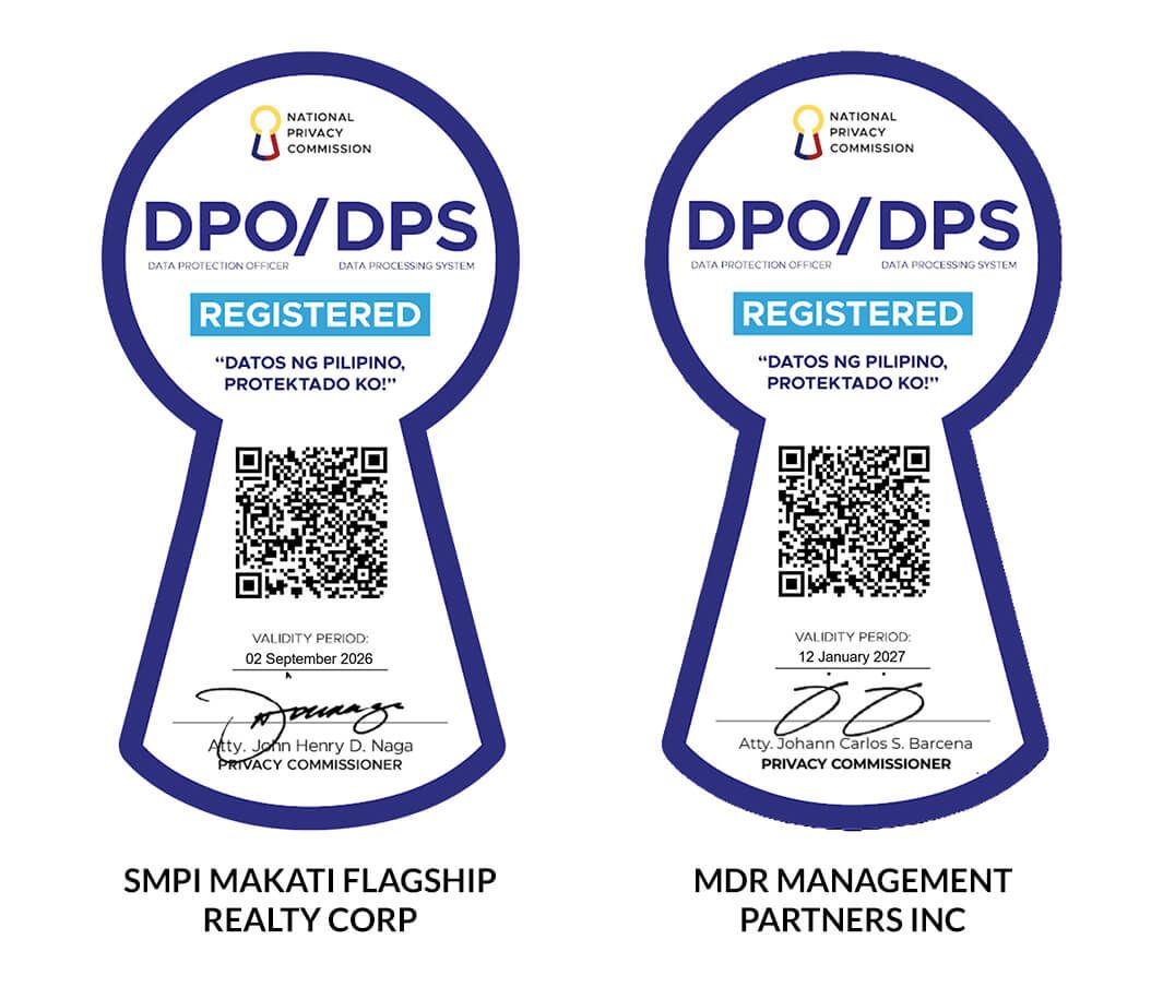 SMPI Makati Flagship Realty Corp. and MDR Management Partners, Inc. (collectively, “Makati Diamond Residences”, “We”, “us” or “our”) respects your privacy and will keep secure and confidential all personal and sensitive information that you may provide to Makati Diamond Residences and/or those that Makati Diamond Residences may collect from you (“Personal Data”).